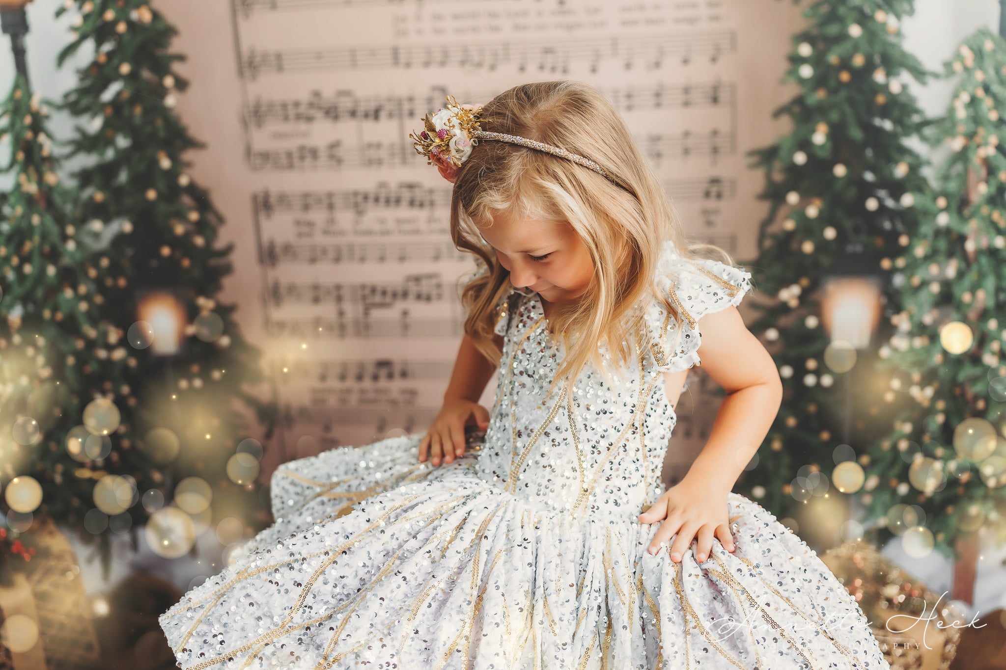 - Christmas Scene: Capture close-ups that highlight festive details like the gown's shimmer or accessories.
