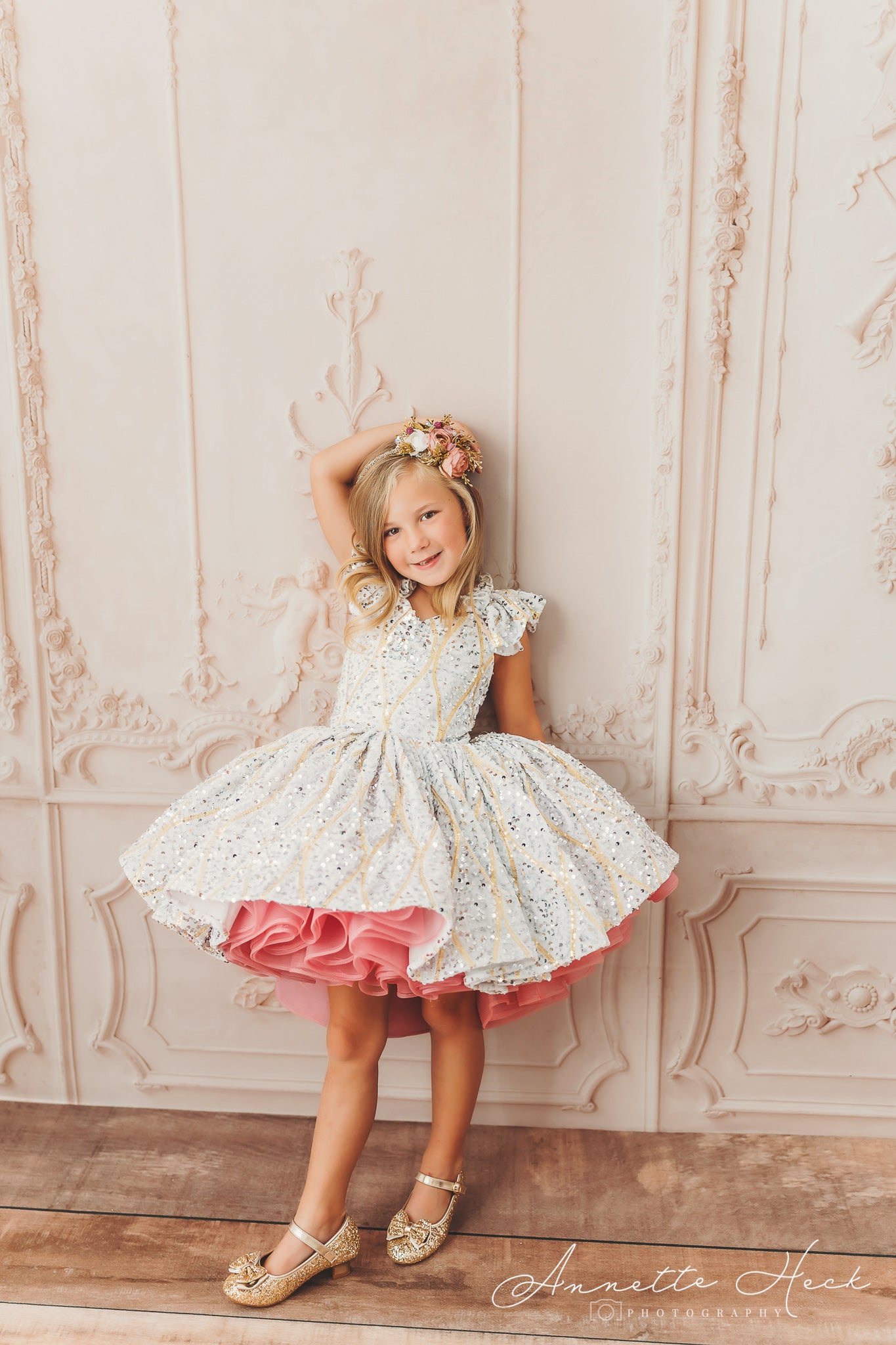 We love how Annette Heck Photography captured the versatility of our Sweetheart Dance sequin petal gown. By styling the dress in two different scenes, she truly highlighted its adaptability and elegance in various settings.