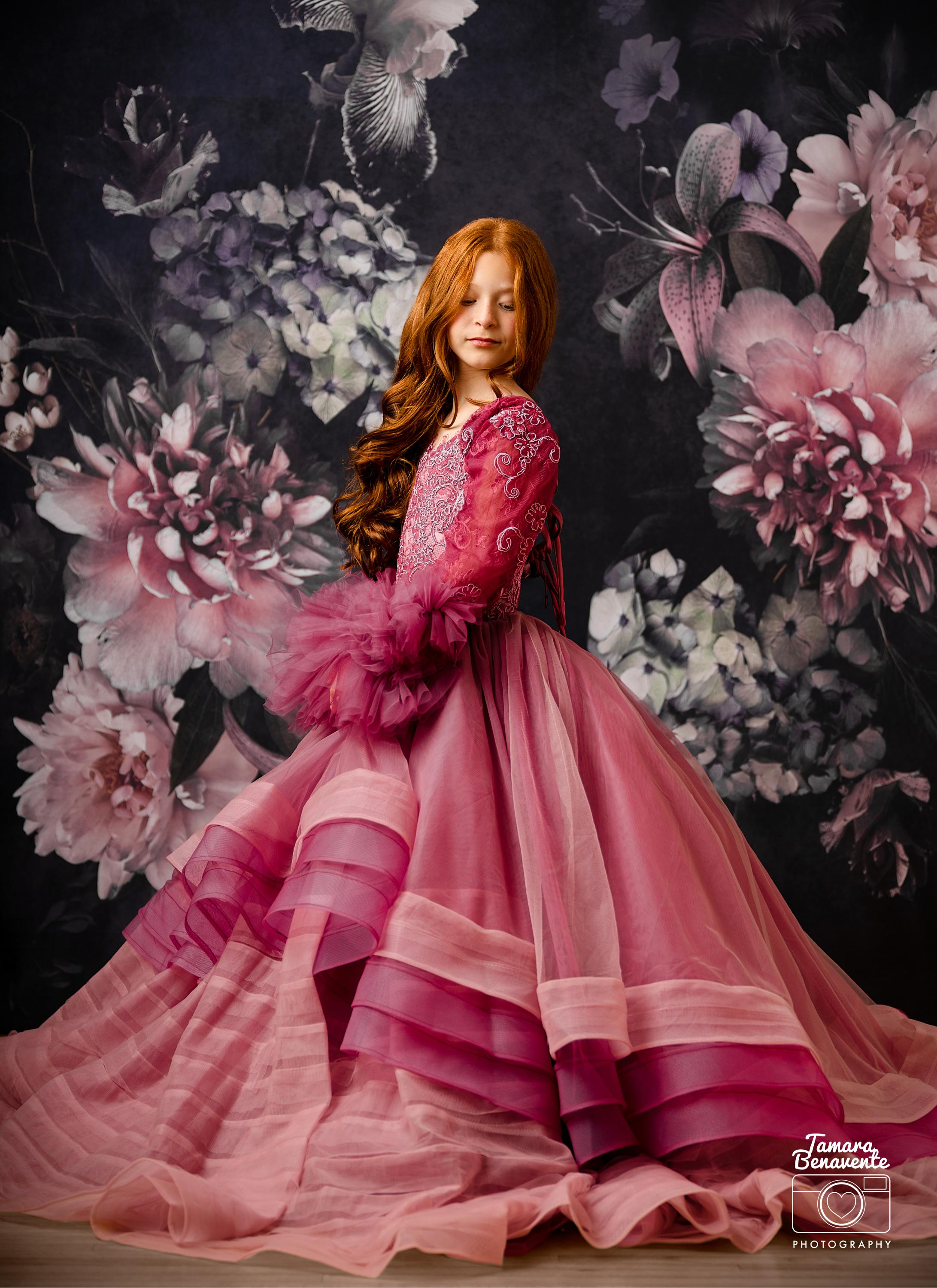Tamara recently hosted princess sessions in her Miami studio, showcasing our Madeline Floor Long Gown and Whispering Pink Floor-Length Gown with detachable lace sleeves. The young models, Laura and sweet Sabrina, looked absolutely stunning in our newest rental gowns and she used Kate Backdrops for the photography sessions to bring her vision to life.