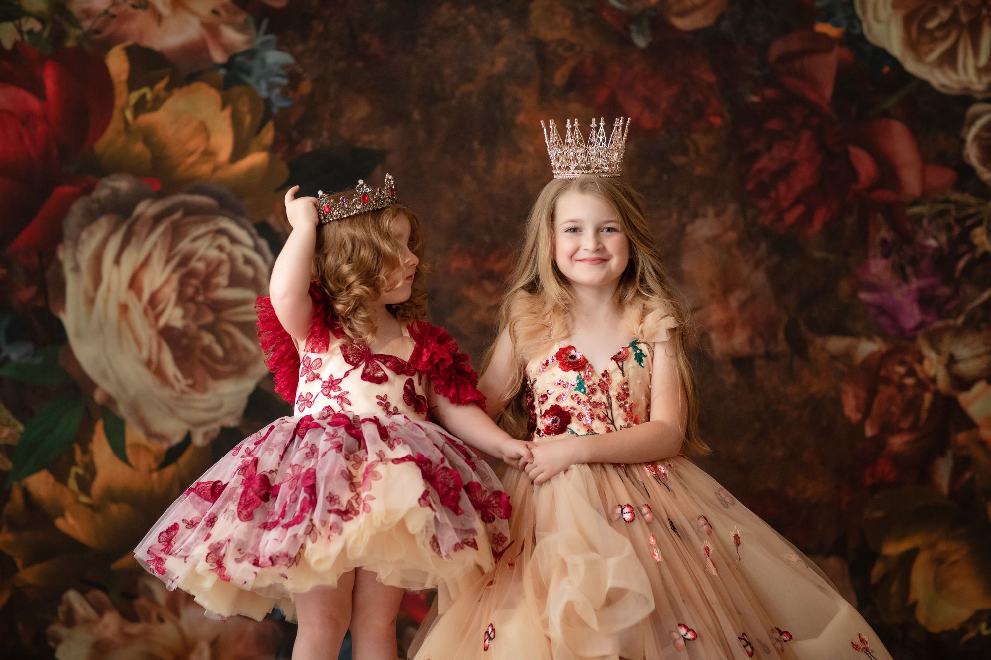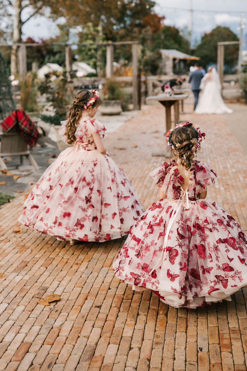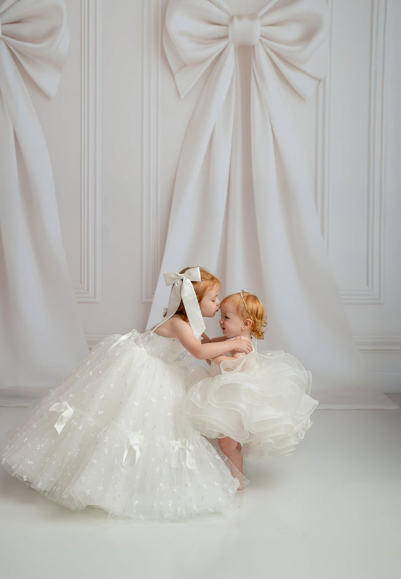 "We designed coordinating sister gowns for a family shoot. The color blending and tulle movement were perfection — truly heirloom quality."