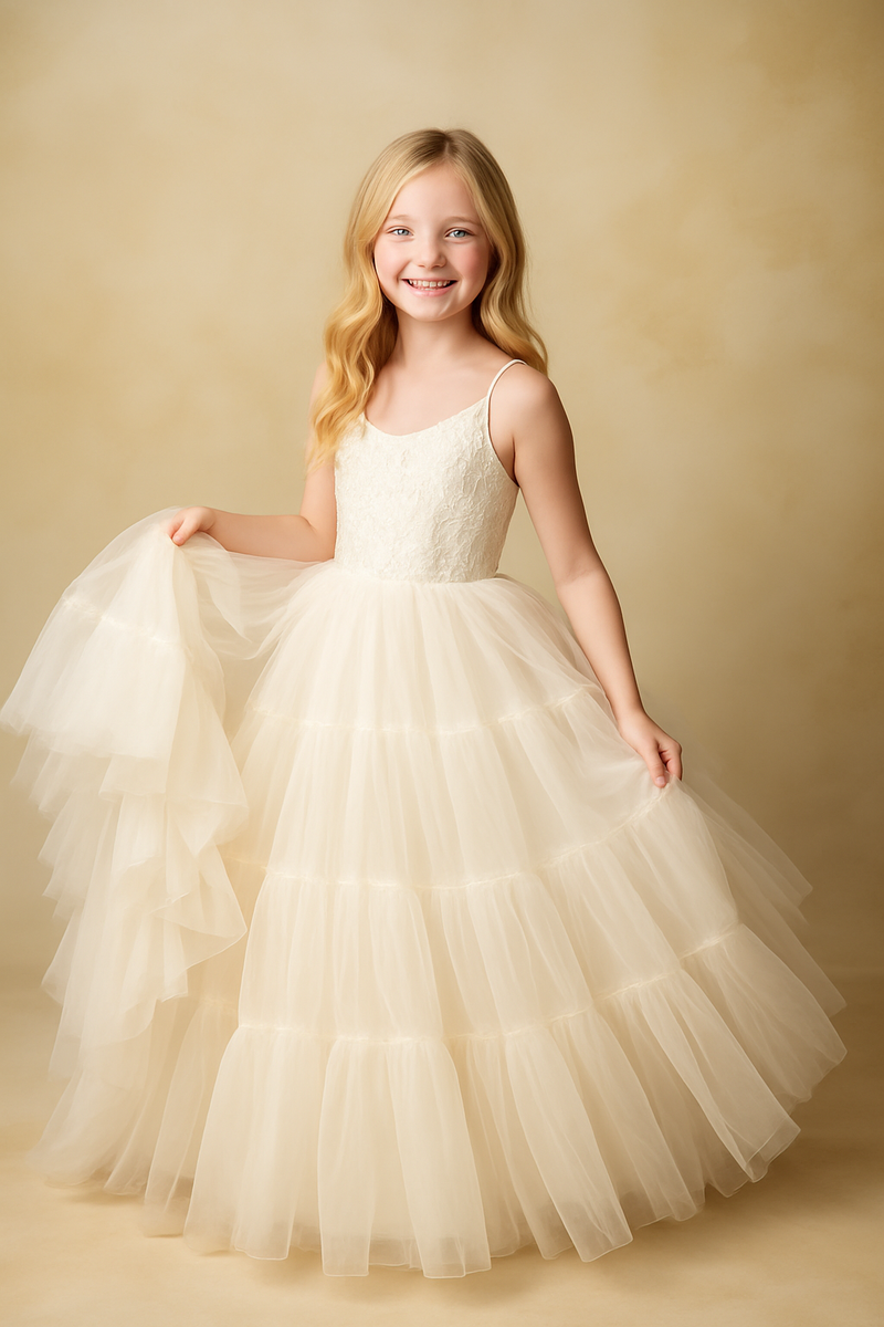 We hand-select couture fabrics, curate custom color stories, and design silhouettes that flatter children, teens, and adults. From soft tulle to luxe satin and 3D appliqués, every element is chosen with purpose.