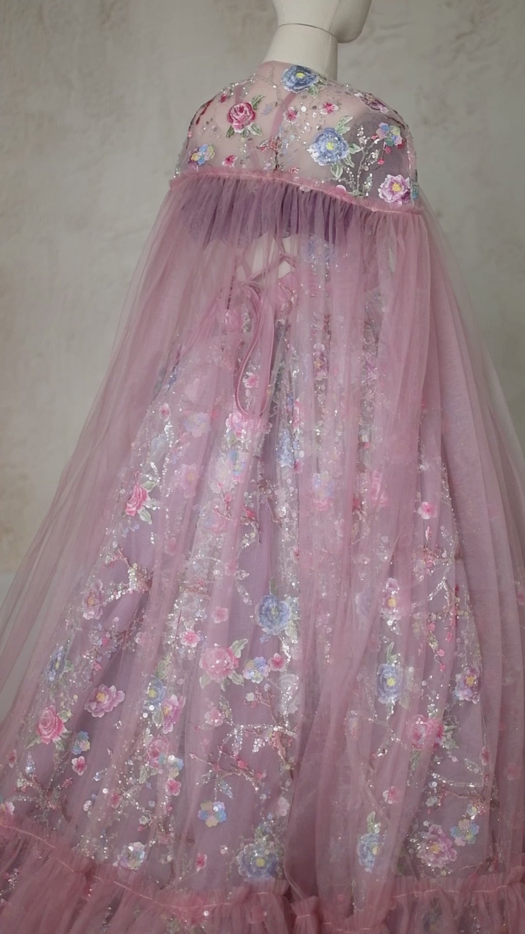 "Blush & Blossom Melody" Floor Length Gown + Detachable tulle cape (8 Year - 9 Year)