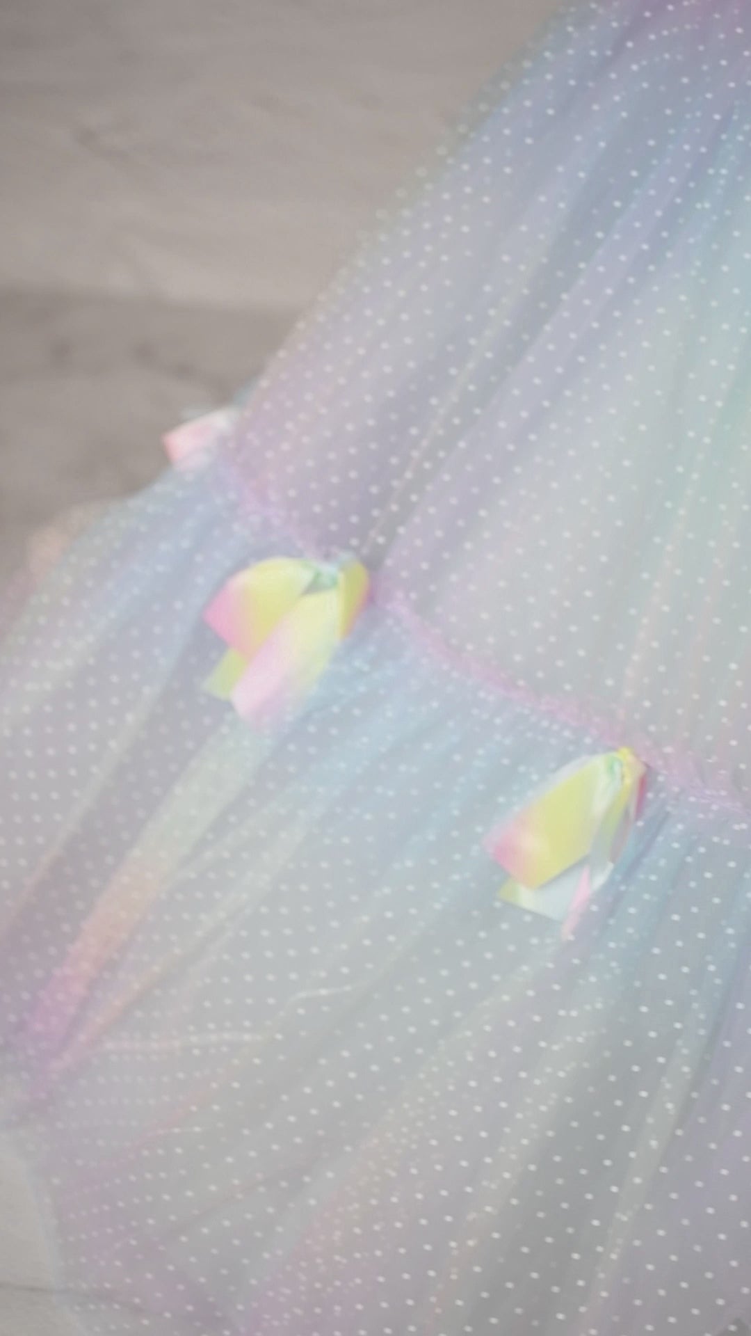 Colorful Bliss – Customizable Girls Pastel Gown with Detachable Tulle Sleeves for Photography & Special Events
