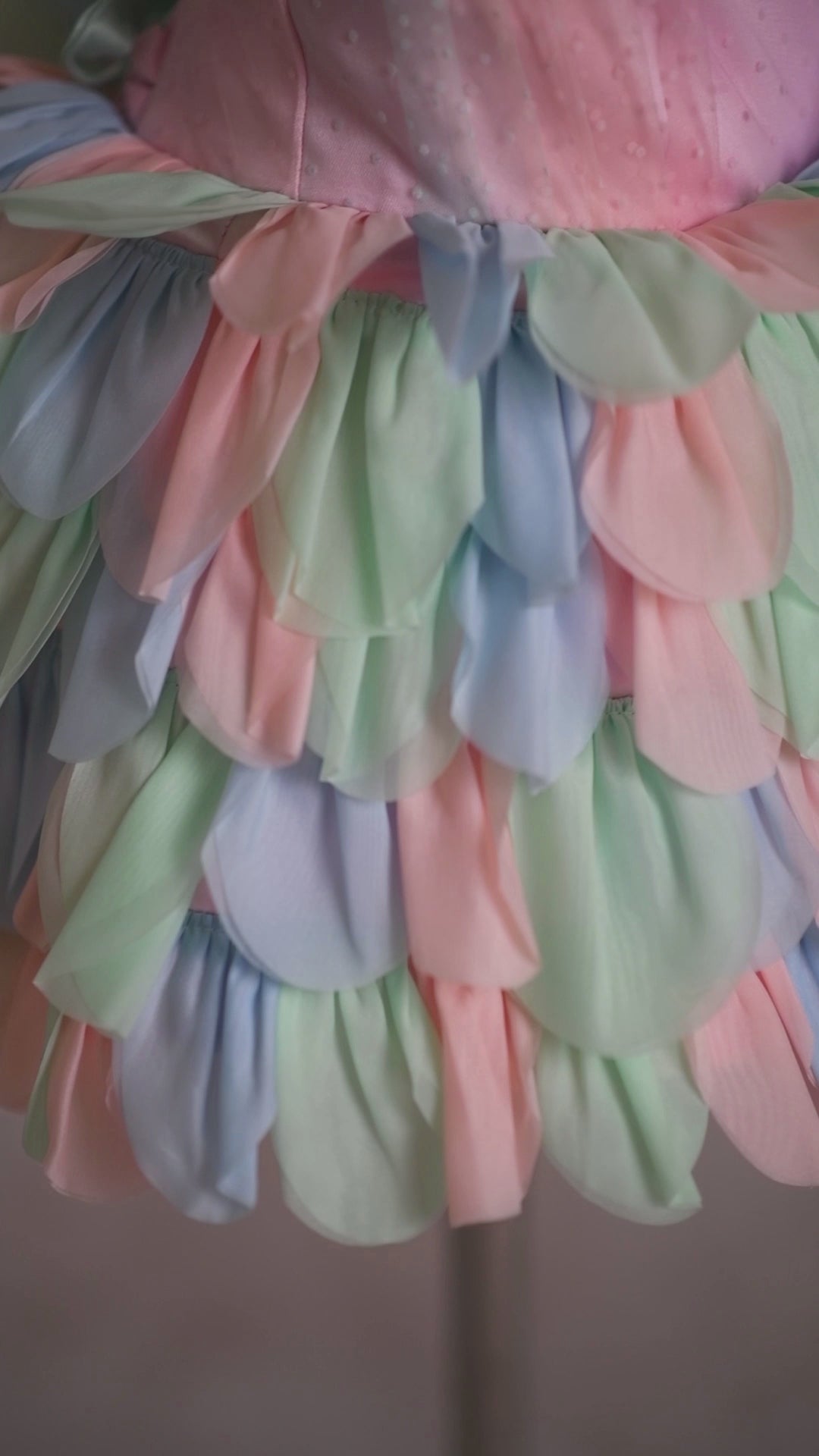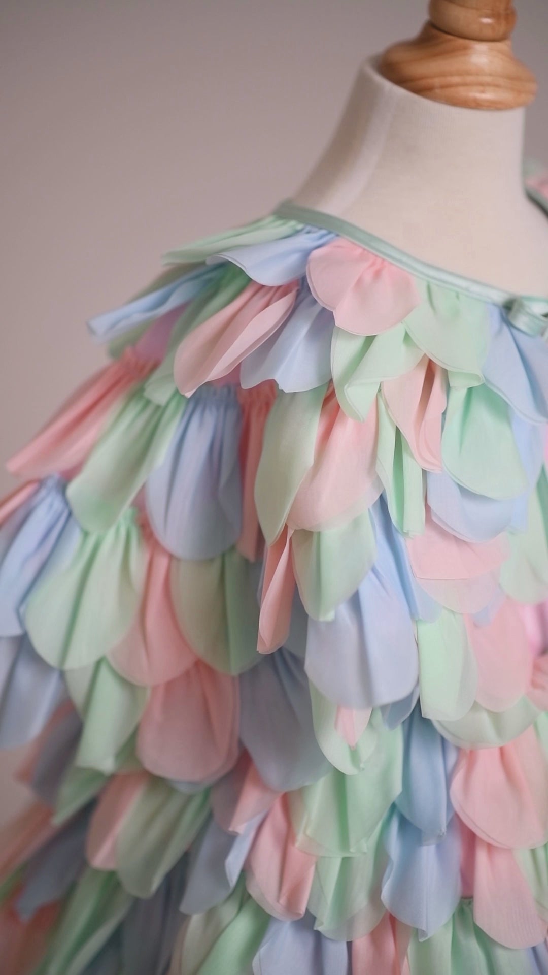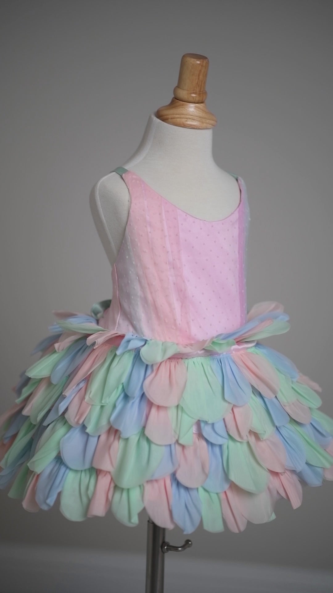 Couture Rental Gown "Petal Whispers" Pastel - Petal Length Dress + Cape ( 2 Year - Petite 4 Year)