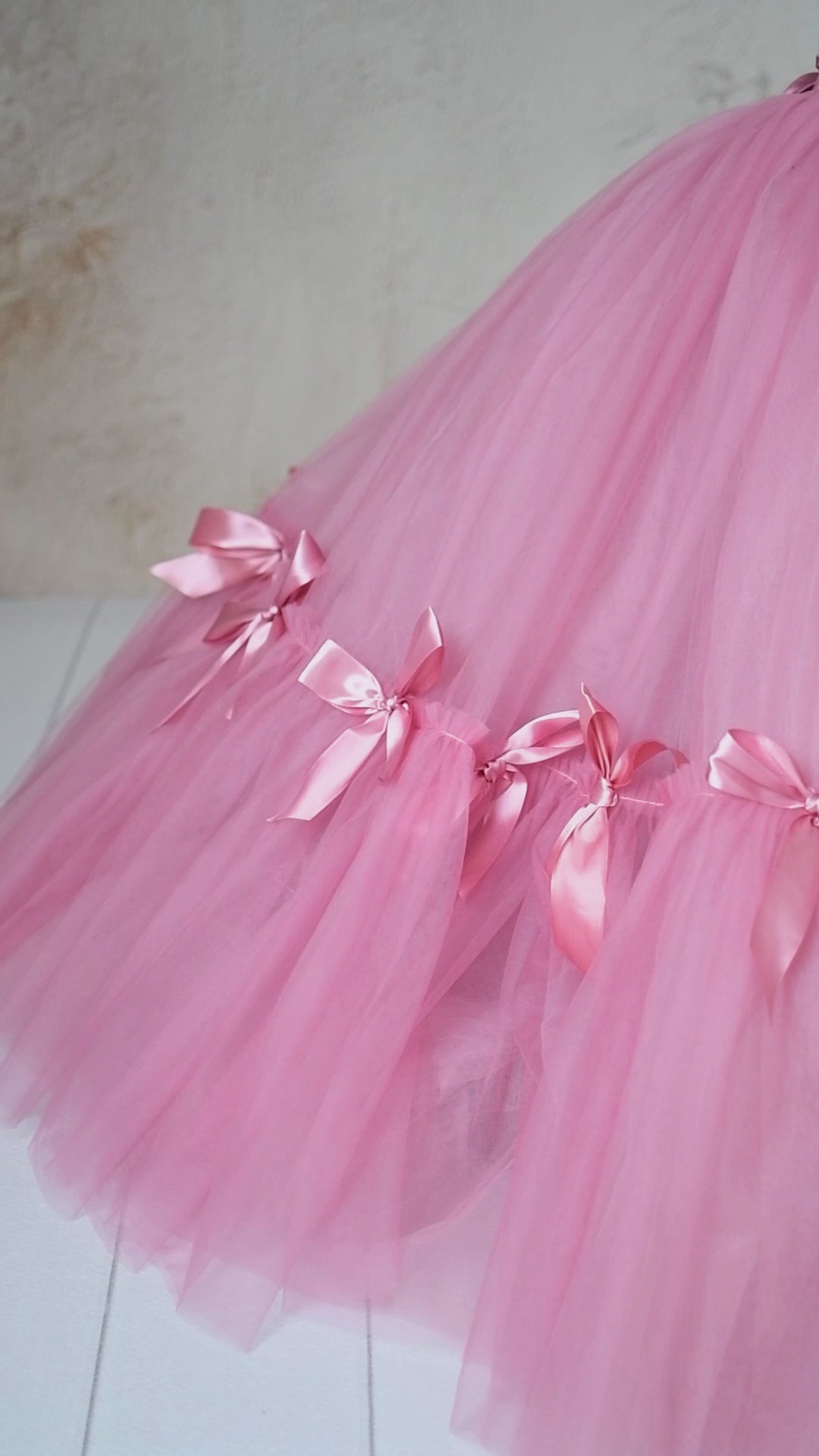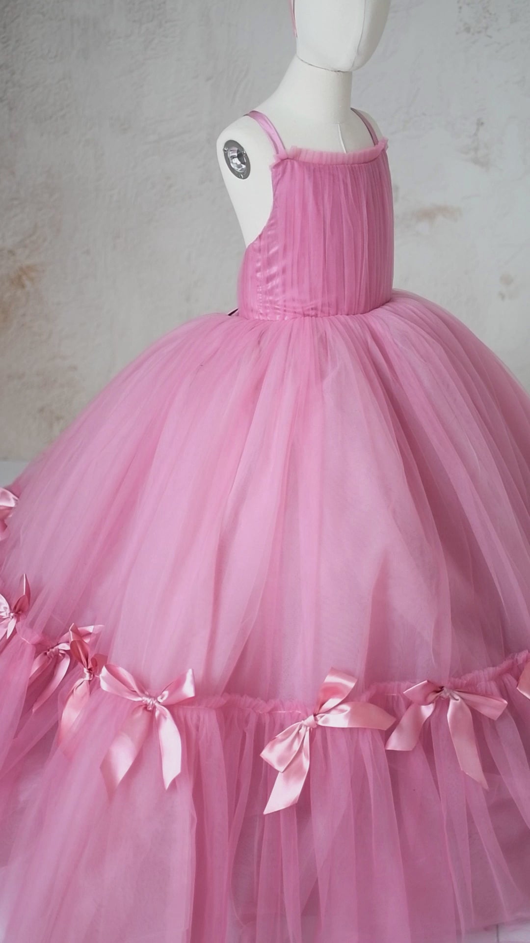 Crafted from luxurious bridal soft tulle and satin, the Bows of Grace gown exudes grace and charm. Ideal for special occasions, weddings, or photoshoots, this gown offers the perfect blend of beauty and comfort, ensuring your little one shines with effortless elegance.