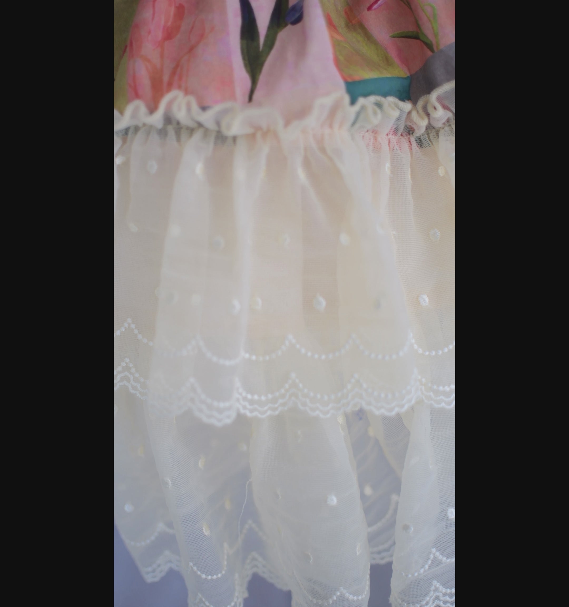 This delightful silhouette showcases a beautiful vintage inspired floral check print fabric. The lace trim detailing adds a playful touch. Her skirt features a soft minimum poof petticoat making it lightweight and twirltastic. Making it the essential dress for Spring and Summer. Its flexible back design ensures easy size adjustments.