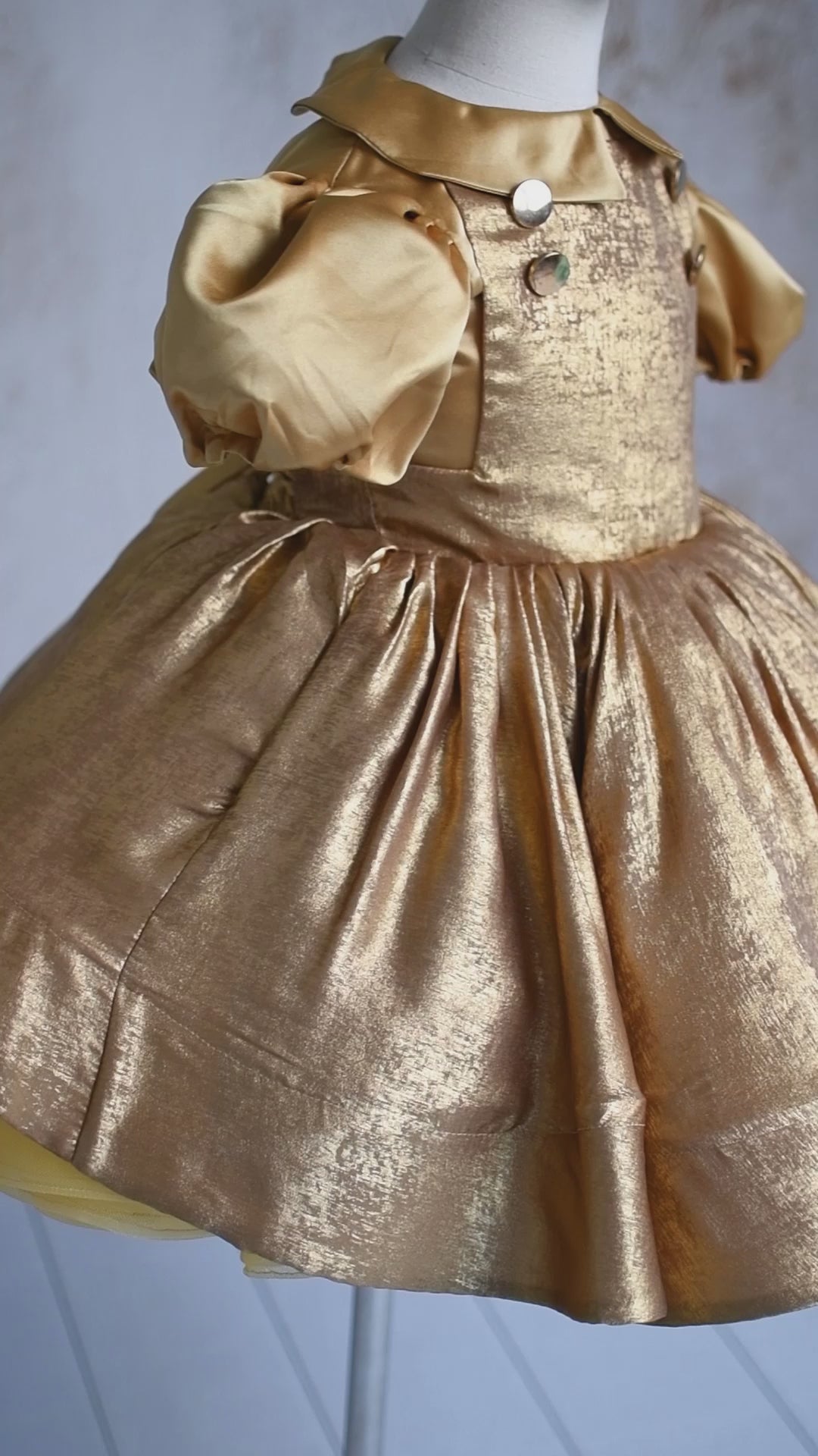 Our Golden Belle Vintage-Inspired Dress blends timeless elegance with modern versatility, offering three stylish looks in one. Crafted from luxurious satin, the bodice can be worn alone for a chic statement or paired with the charming apron-style dress overlay for a classic touch. The dress features adjustable shoulder ties and an elastic waist for a perfect fit, ensuring comfort and style for any occasion. The shimmering fabric and delightful accents make this dress a standout choice for special occasions and photography sessions.