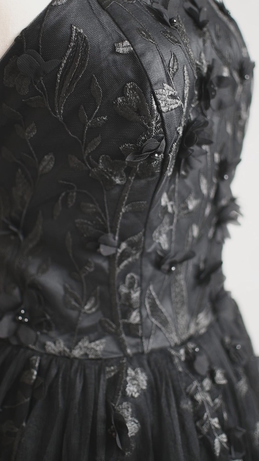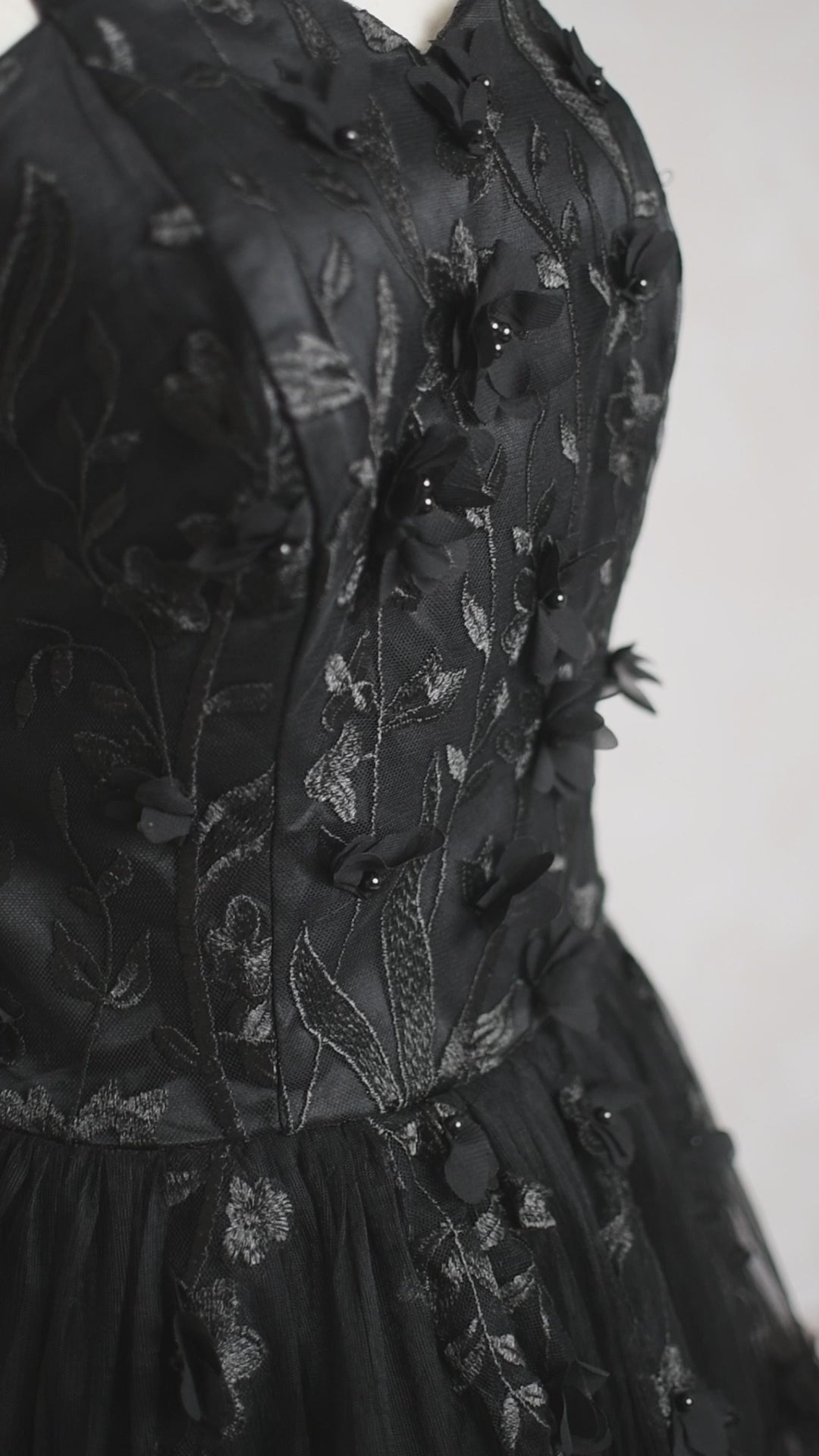 Our "Heavenly" Black Couture Rental Gown is the perfect dress for any fashionable lady! This beautiful design is crafted for those unforgettable photography sessions or special events. Featuring a floor-length silhouette and a magical black colorway, this gown ensures you steal the spotlight.