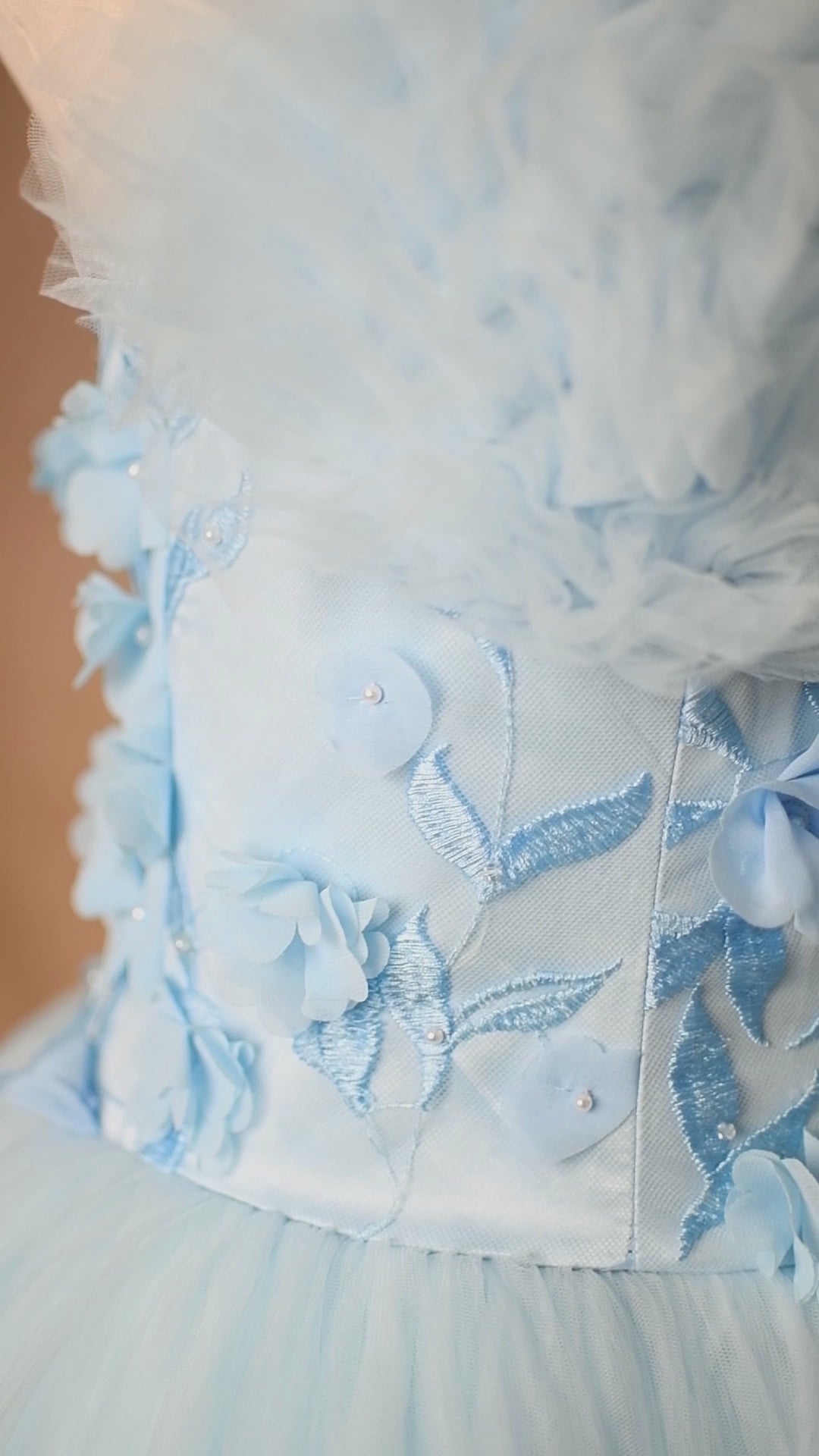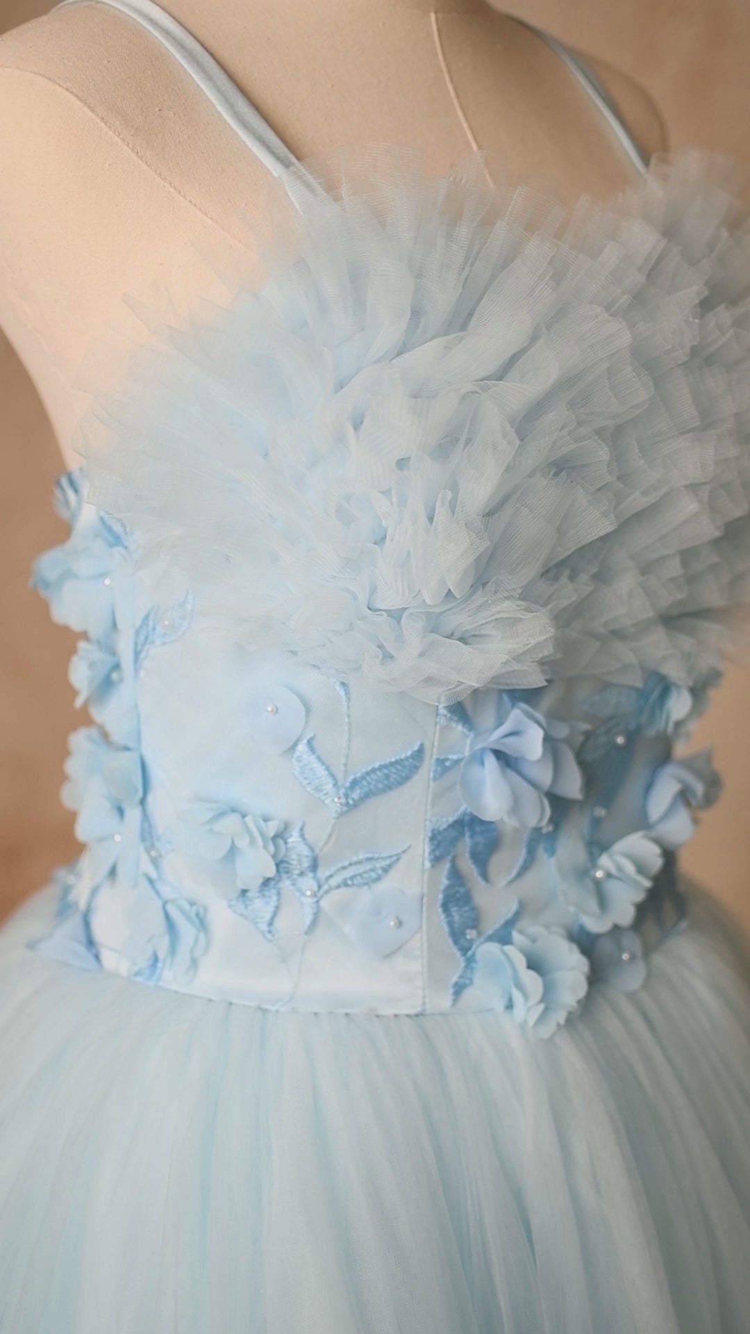 Treat your gown with the same care and love that went into creating it. Always handle with clean hands and store in a breathable garment bag when not in use- if possible. Lightly steam or hang to release any wrinkles before your session — avoid using high heat directly on delicate tulle or lace.