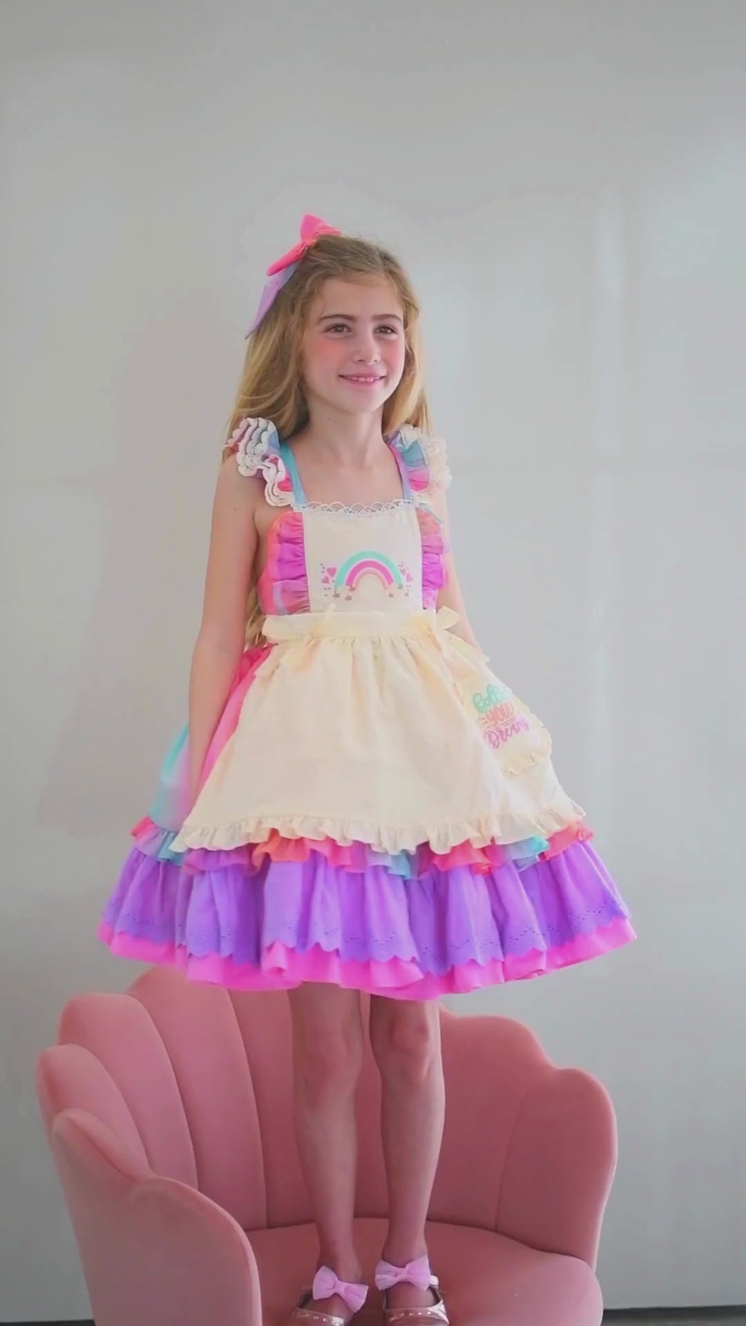 Our enchanting Rainbow Dreams vintage inspired dress was designed exclusively for the little fashionistas who love to dream big.