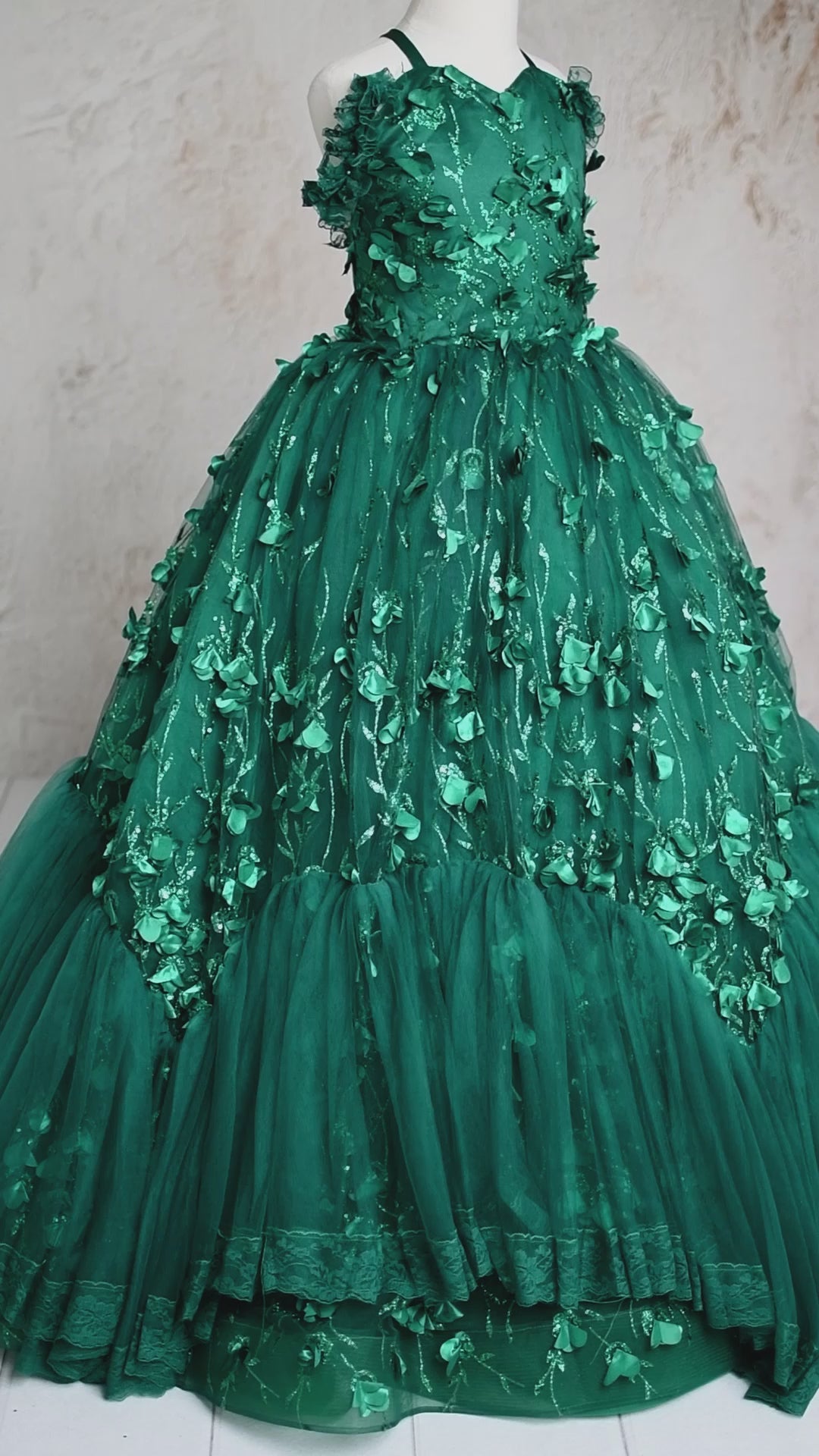 Our couture rental gowns are designed with adjustable sizing for styling flexibility. While gowns are listed with a size range, this does not guarantee they will fit that exact age. Every child is unique, and our gowns are not sized like standard retail clothing.
