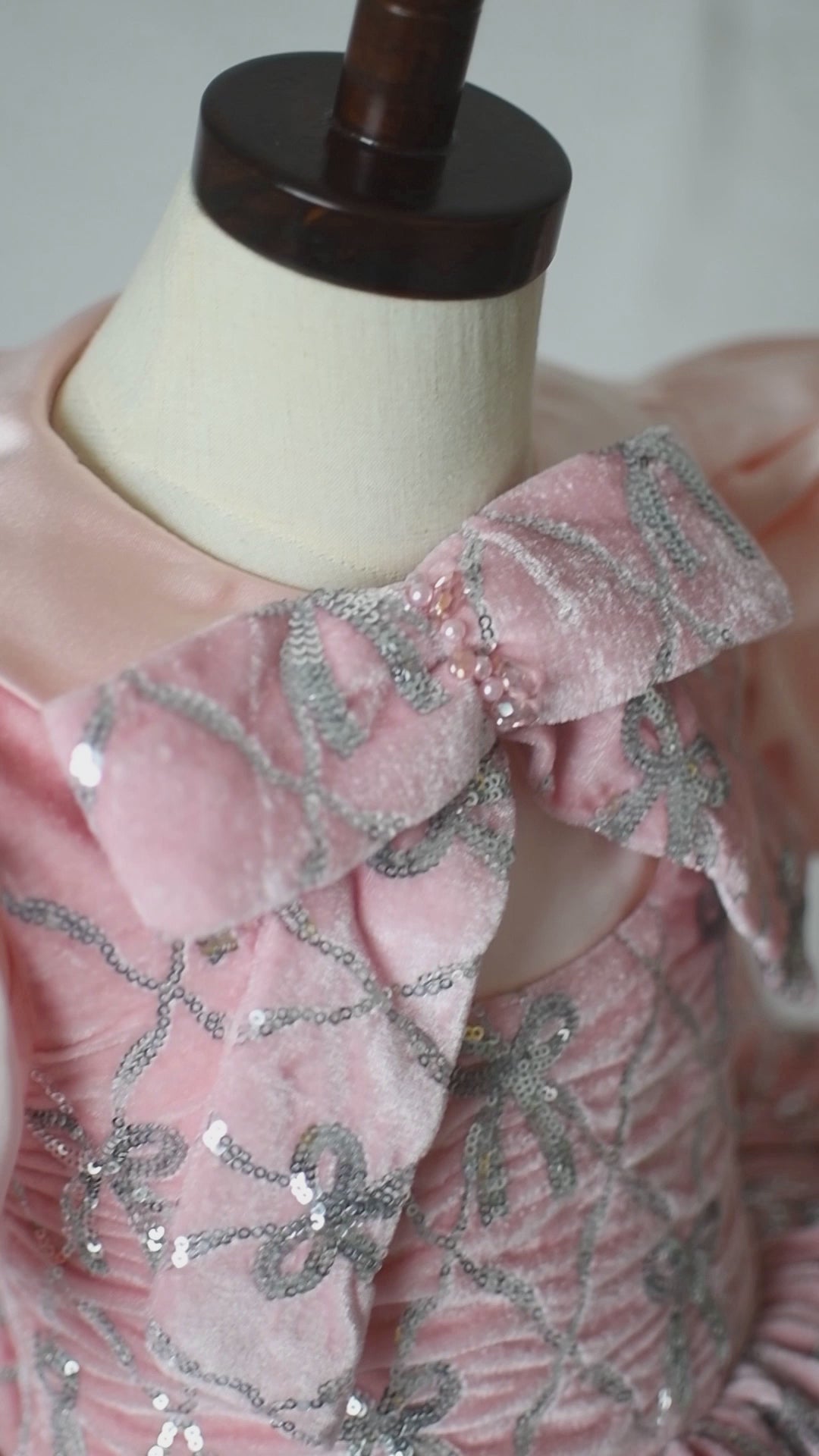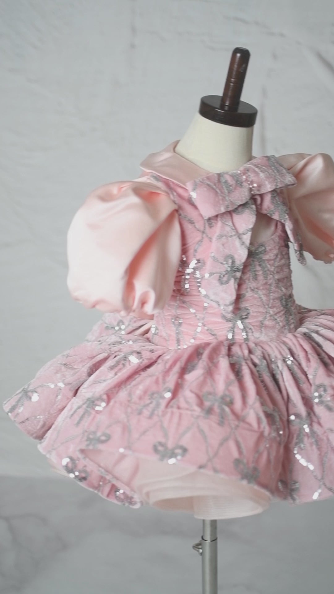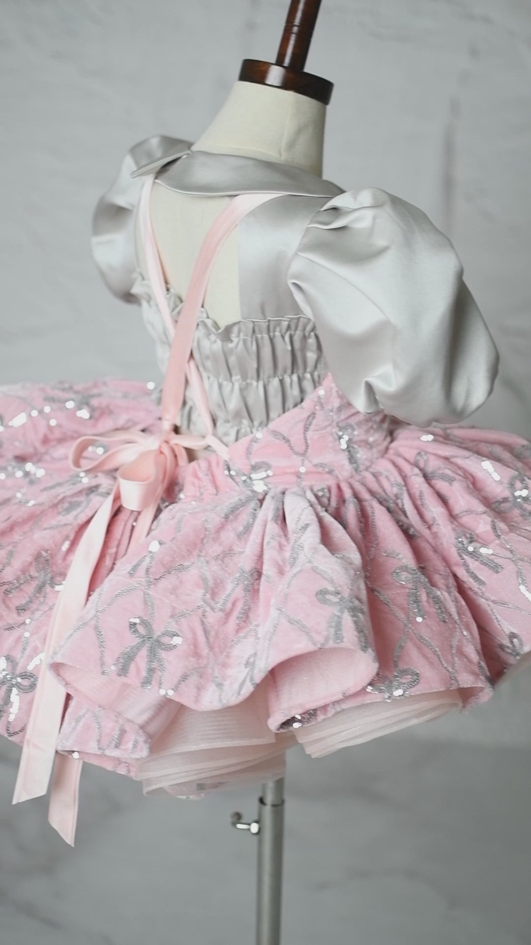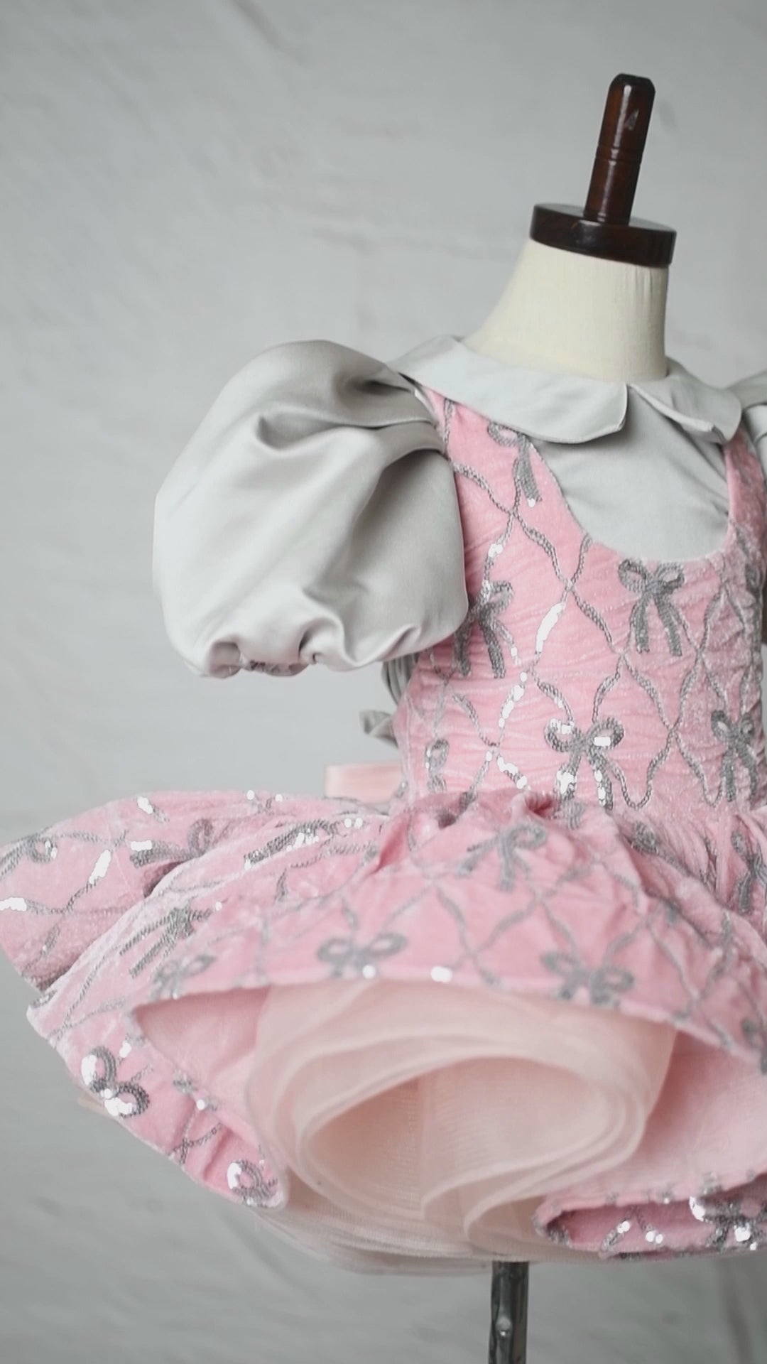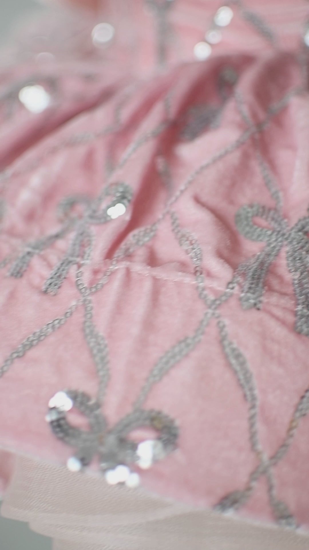 Whimsy and wow-factor collide in our Velvet Whimsy Bows Apron Dress, designed for unforgettable moments and standout sessions. This couture creation features a luxuriously soft velvet fabric adorned with shimmering silver bow embroidery that adds just the right touch of sparkle.