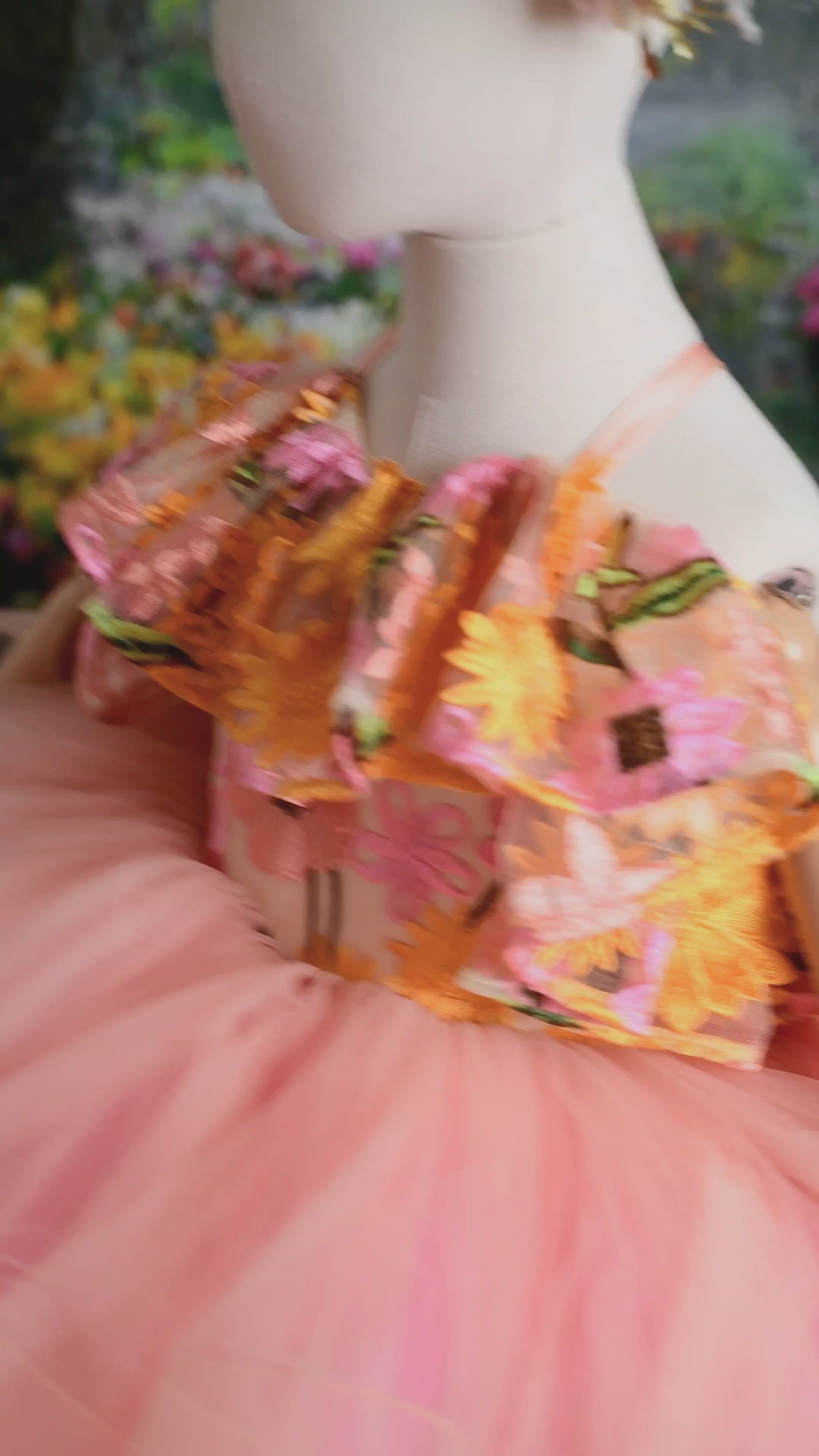 Her skirting features yards of bridal soft tulle. The skirting is fully lined so not itchy feeling against the skin.